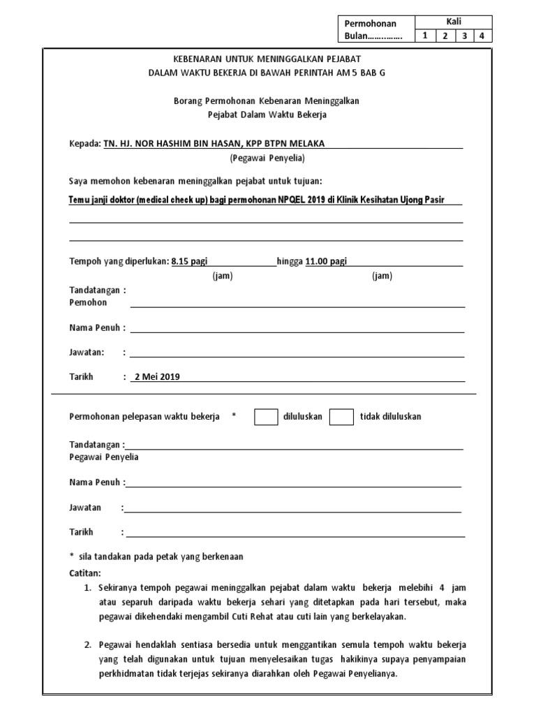 Kebenaran Keluar Pejabat Perintah Am Bab G Pdf Free Download from docplayer.info Borang kebenaran urusan rasmi ke luar negara. Aduan, maklum balas & cadangan. Sekretaris daerah selaku koordinator pengelolaan keuangan daerah Pada petang 12 ogos 2019, pegawai telah mengisi borang kebenaran keluar pejabat dalam waktu bekerja untuk urusan tersebut. 087884715 / 364 faks ; Mataku dari atas kepalanya memandang tubuhnya yang telentang di atas kursi cuci. Bawa borang kebenaran yang telah lengkap diisi ke balai polis berhampiran untuk. Oh, kelihatannya dia tidak memakai bh.