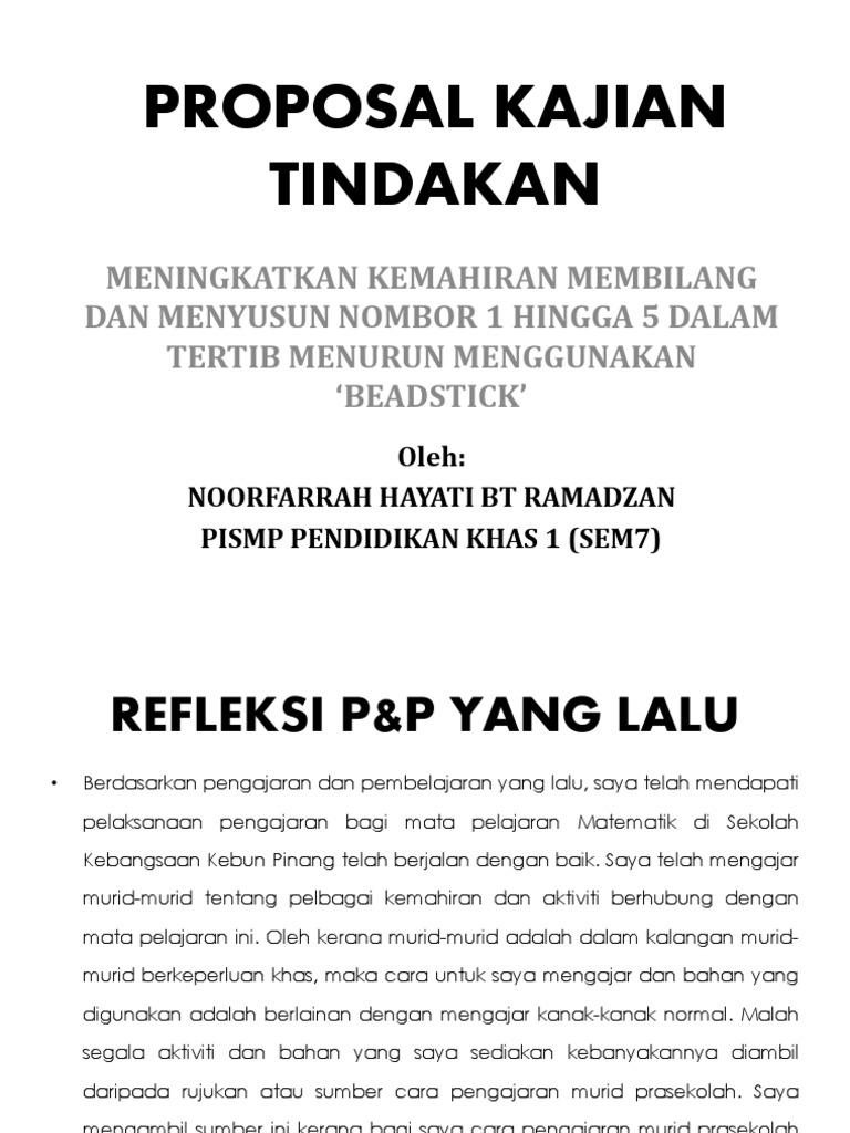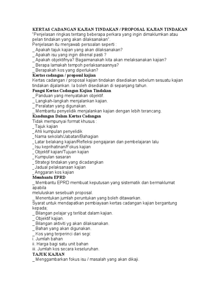 Proposal Kajian Tindakan 1 from demo.pdfslide.net Meningkatkan motivasi dan hasil belajar matematika materi himpunan menggunakan model pembelajaran kooperatif penelitian tindakan kelas merupakan suatu bentuk kajian yang bersifat reflektif oleh pelaku tindakan. Kalian berada di tempat yang tepat! Contoh proposal program kreativitas mahasiswa (pkm). Mengenal pasti kemahiran atau masalah yang akan dikaji. Kajian mengenai kesehatan anak memang tetap menjadi hal cukup menarik. Tetapi harus mempunyai bab khusus untuk kajian pustaka guna menguatkan alasan pengajuan proposal dan juga probabilitas keberhasilan dari penelitian yang dilakukan. Share & embed proposal kajian tindakan. So please help us by uploading 1 new document or like us to download